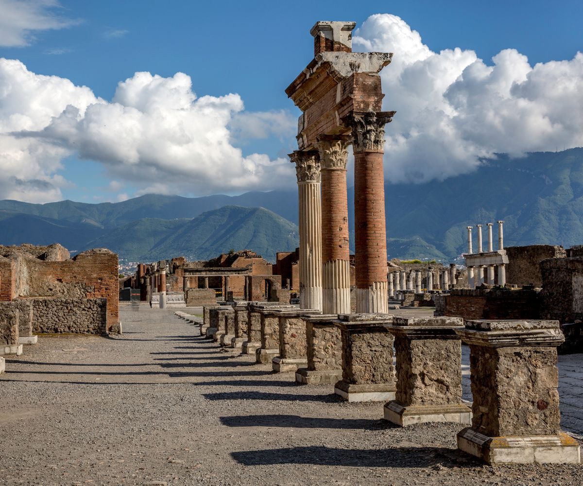 Συγκέντρωση στο αεροδρόμιο Ελ. Βενιζέλος, απ’ όπου θα πάρουμε την πτήση για Νάπολη. Άφιξη, επιβίβαση στο λεωφορείο μας και μεταφορά στη νεκρόπολη της Πομπηίας, που εξαφάνισε το 79 μ.Χ. η έκρηξη του Βεζούβιου. Κατά την ξενάγηση θα δούμε το περιμετρικό τείχος, το φόρουμ, την πόρτα Μαρίνα, την έπαυλη των Βέτρι, τον Ναό του Απόλλωνα, την αρχαία αγορά, το θέατρο της Πομπηίας και τις χαρακτηριστικές τοιχογραφίες του 1ου αιώνα π.Χ. Τακτοποίηση στο ξενοδοχείο μας και πρώτη γνωριμία με την πόλη.